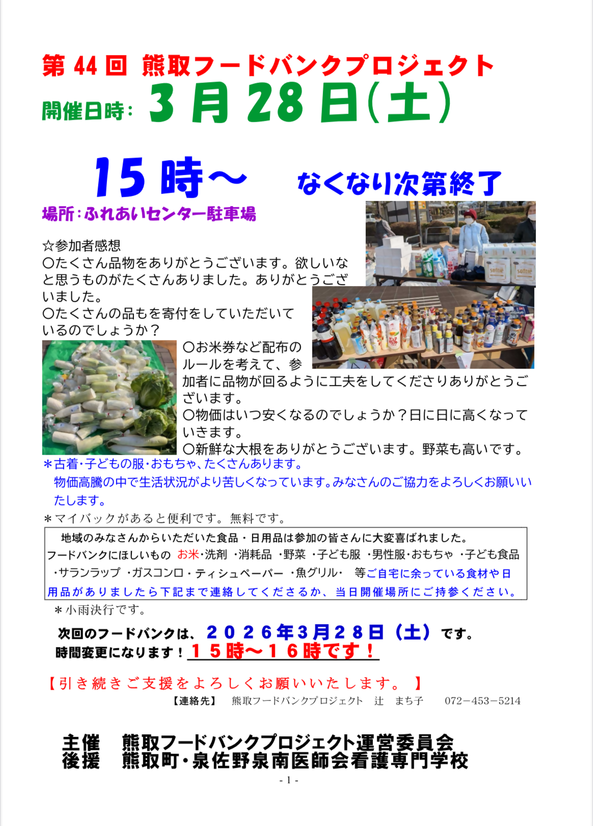 【主催】:熊取フードバンクプロジェクト運営委員会
