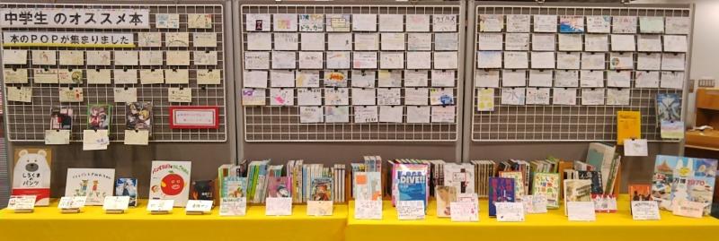 みんなが書いてくれたPOPと紹介してくれた図書館所蔵の本を一緒に展示しています。