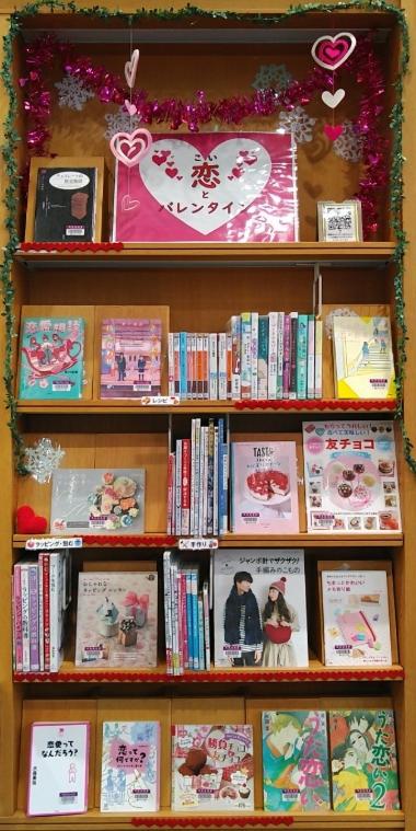 2月のバレンタインに向けて、恋の物語やチョコレートレシピ、手作りプレゼントの参考になりそうな本などを集めて展示中です。